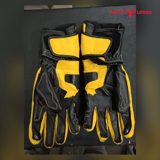 Motorcycle Riding Professional Racing Gloves Yellow Cowhide